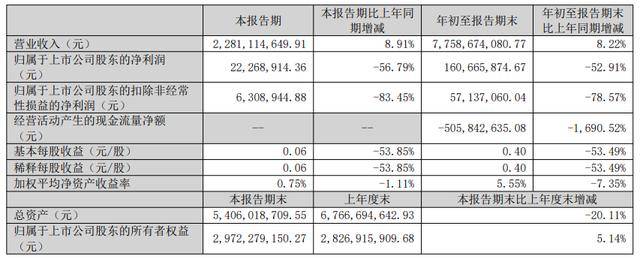 比利润下滑更紧迫的是现金流危机。报告期末,公司经营现金流净额为-5.06亿元,同比下降1690.52%,主要系本期经营性采购支出增加所致。