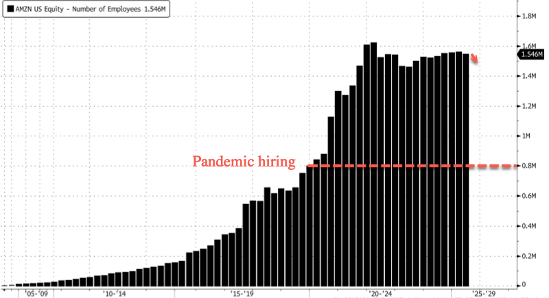 截至6月30日,亚马逊是美国第二大私人雇主,全球员工总数约155万人,其中大多数为仓储工人。企业员工约35万人。